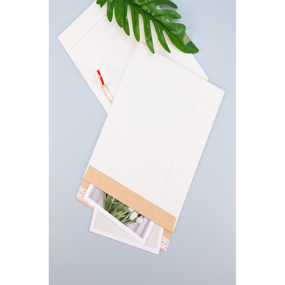 - 1 vertical tear strip for easy opening, and after the strip is torn, an extended inner lip prevents things to slide out even the envelope is upside down.