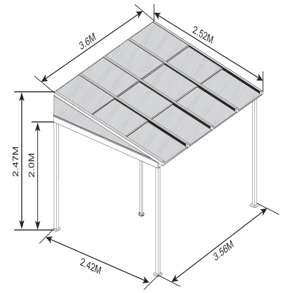 Art No.TGA2363W2 Wall mounted PC roof gazebo size:2.5 *3.6* 2.05/2.4 m